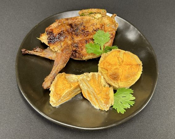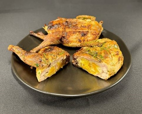 Poulet en crapaudine mariné braisé au four à charbon